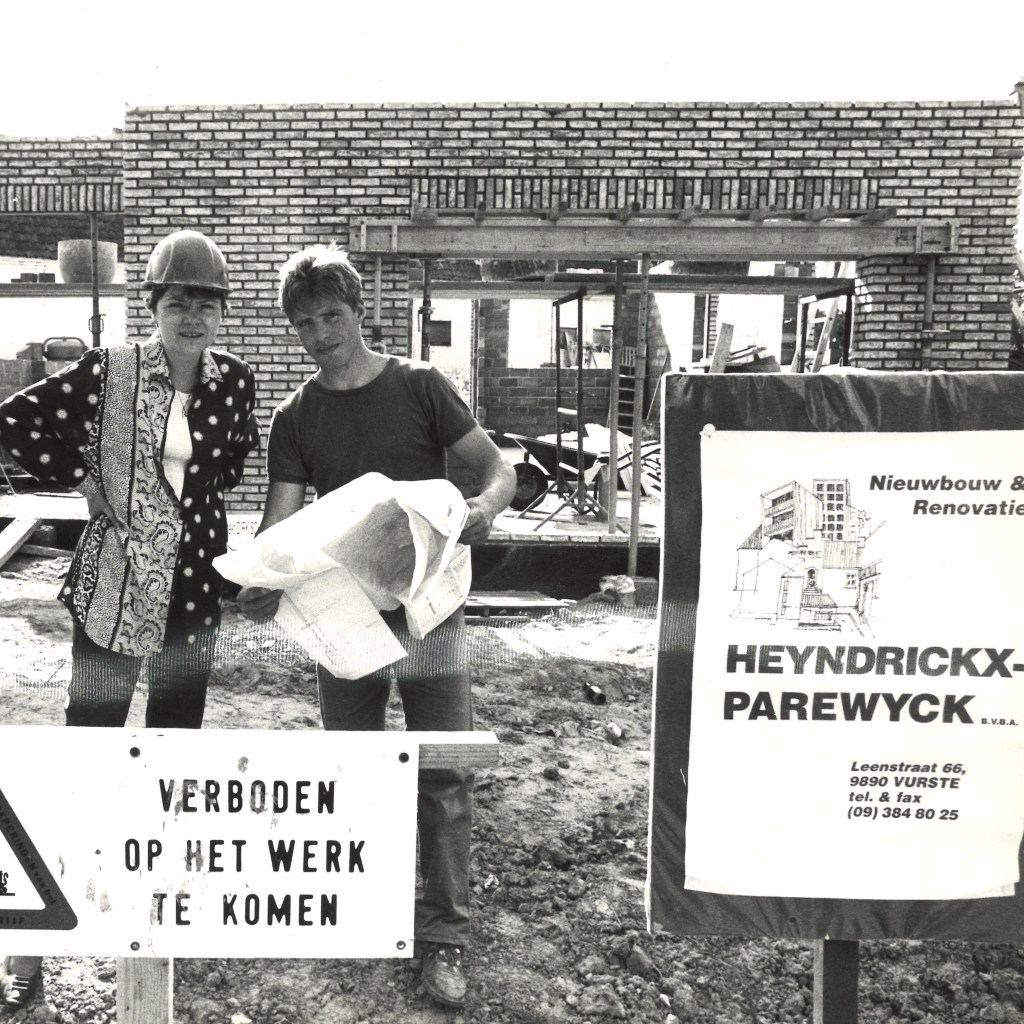 An Parewyck en Gino Heyndrickx starten hun eerste bouwbedrijf, met een gedeelde passie voor kwaliteit en vakmanschap. Gino bracht het metsersambacht van zijn vader Daniël mee, terwijl An opgroeide in de technische wereld van haar vader Lucien. Samen richtten ze Heyndrickx-Parewyck bvba op, met een focus op nieuwbouw, renovatie en restauratie van particuliere woningen en appartementen. Vakmanschap, betrokkenheid en klantgerichtheid lagen vanaf het begin aan de basis van hun aanpak.